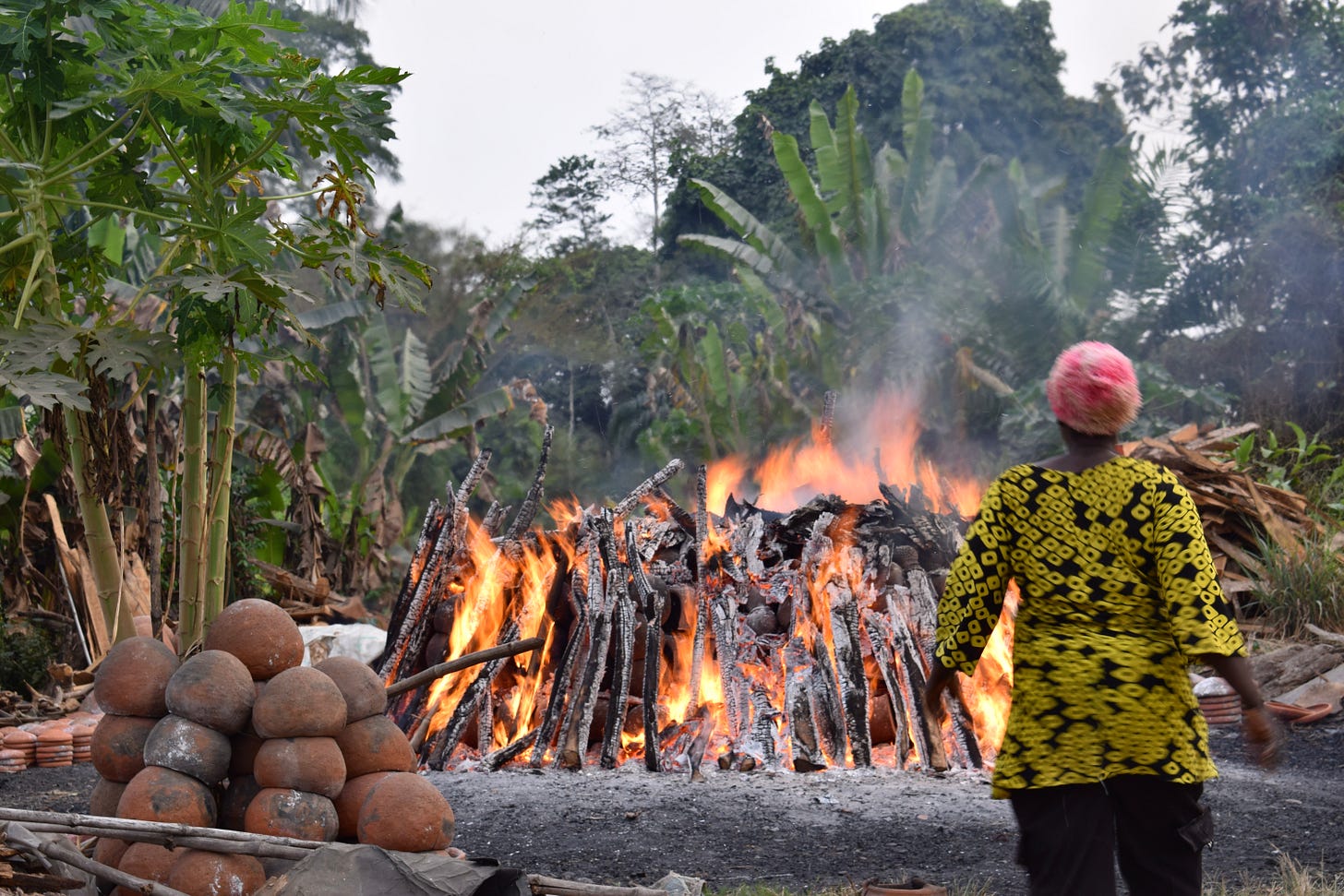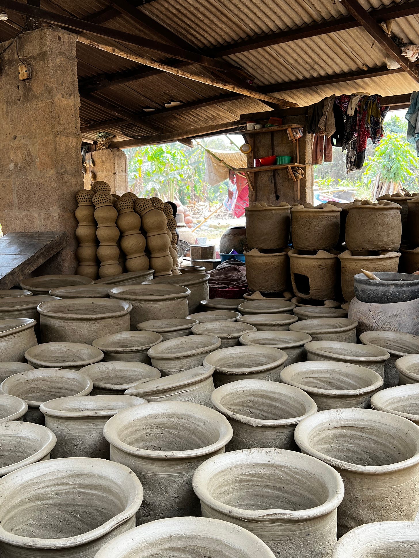 When we come back, all those pots we left in flames are now sitting on the side of the road, the Ọjà Ọba, I call it, The Queens’ Market. A van filled to the rim with pots leaves Ìganran shortly after we arrive, taking them to a store, I guess, to then be taken to a new home, their new life about to begin as they leave their birth place behind.